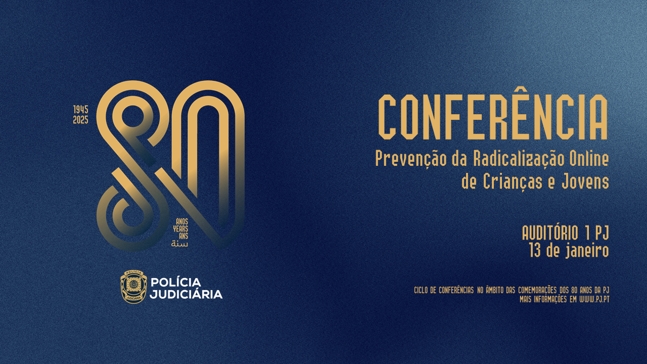 A Polícia Judiciária (PJ), através da Unidade Nacional de Contraterrorismo, realiza, amanhã, dia 13 de janeiro, a partir das 09H30, no Edifício Sede, em Lisboa, uma conferência subordinada ao tema “Prevenção da Radicalização Online de Crianças e Jovens”, cuja sessão de abertura estará a cargo da Ministra da Justiça, Rita Alarcão Júdice, e do Diretor Nacional da PJ, Luís Neves.