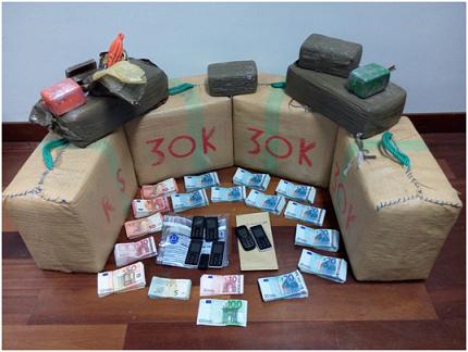 Para além do produto estupefaciente” foram ainda apreendidos a quantia de aproximadamente vinte e seis mil euros” três viaturas automóveis” cinco telemóveis e diversa documentação.